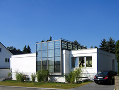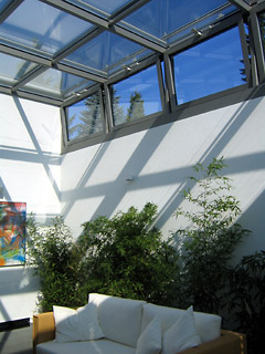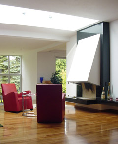 Das neue Oberlicht im Kaminbereich läßt Tageslicht auch in tiefere Bereiche des Hauses - die offenen Wohnräume werden durch Tageslicht strukturiert.