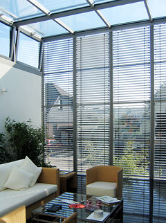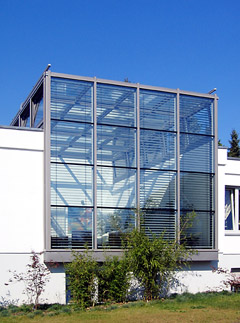 Die Atmosphäre der hellen Räume wird im wesentlichen von Materialfarben bestimmt : rötliches Kirschbaumparkett, schwarzer Granit, weiß geputzte Wände sowie Edelstahl.