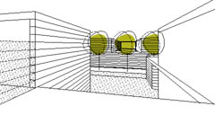 Das prägende Element der neuen Siedlung sind die Wände, die Mauern, die Heckenscheiben - sie bilden bewußt die die inneren und äußeren Räume.