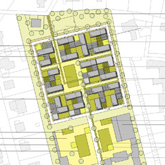 Das Siedlungskonzept bietet eine interessante Vielfalt für bebaute und unbebaute Flächen, es wird ein flexibel zu nutzendes System von stark aufeinander bezogene Wohn- und Freiflächen auf unterschiedlichen Ebenen entwickelt.