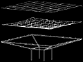 Bei der leichten Dachkonstruktion handelt es sich um ein sogenanntes Tensegres Tragwerk, d.h. Zugkräfte werden kontinuierlich über Seile übertragen, Druckkräfte hingegen diskontinuierlich über einzelne Druckstäbe, die in das Seilnetz eingespannt sind.